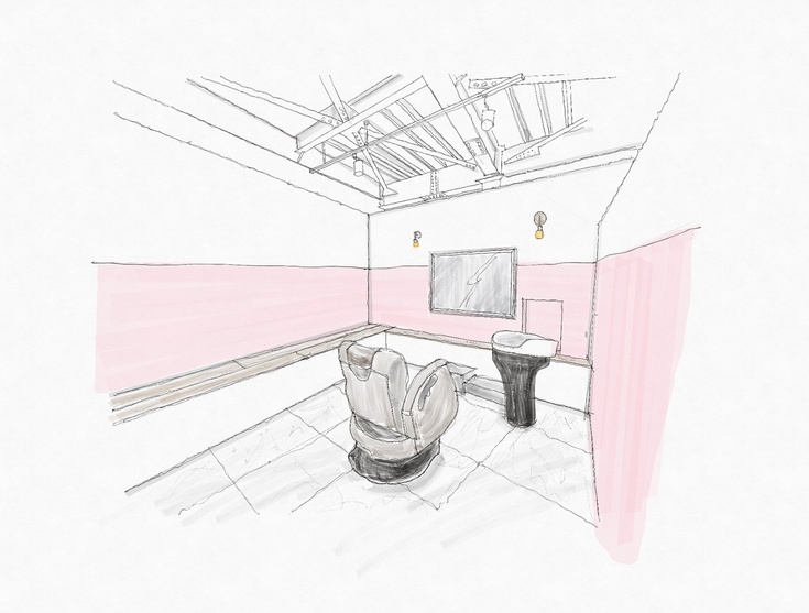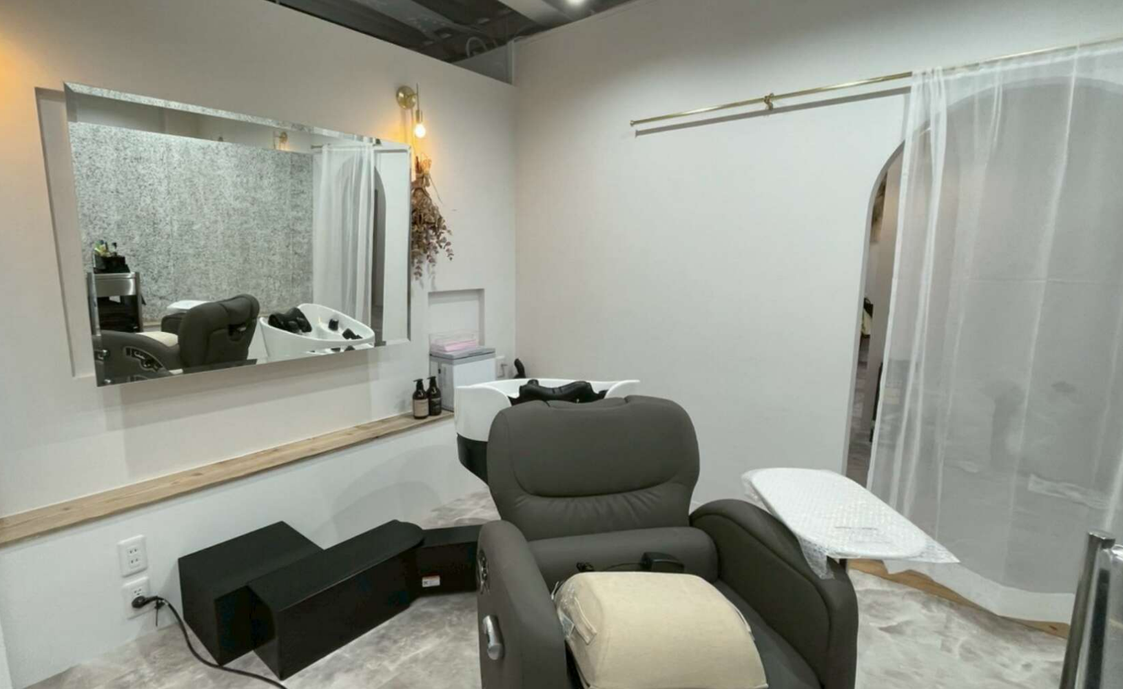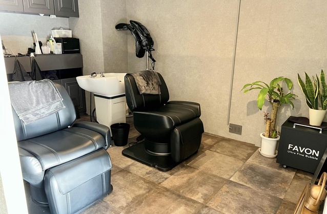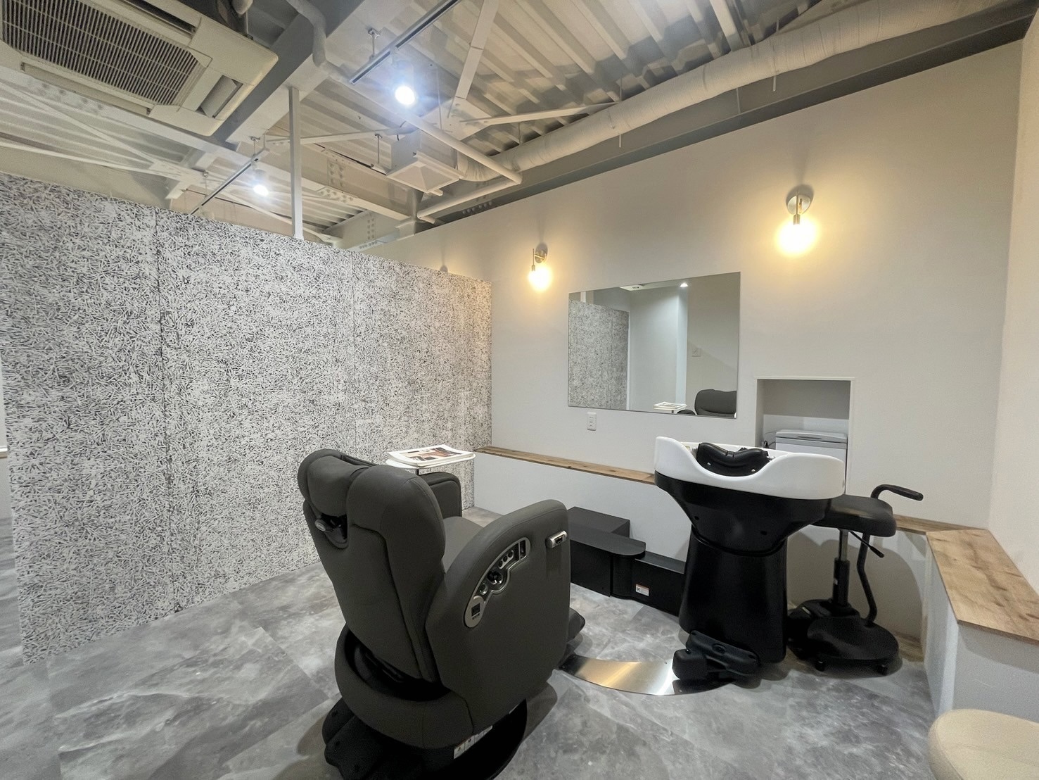 各個室にセット台とシャンプー台を配置し、カットからシャンプーまで1つの空間で完結。
