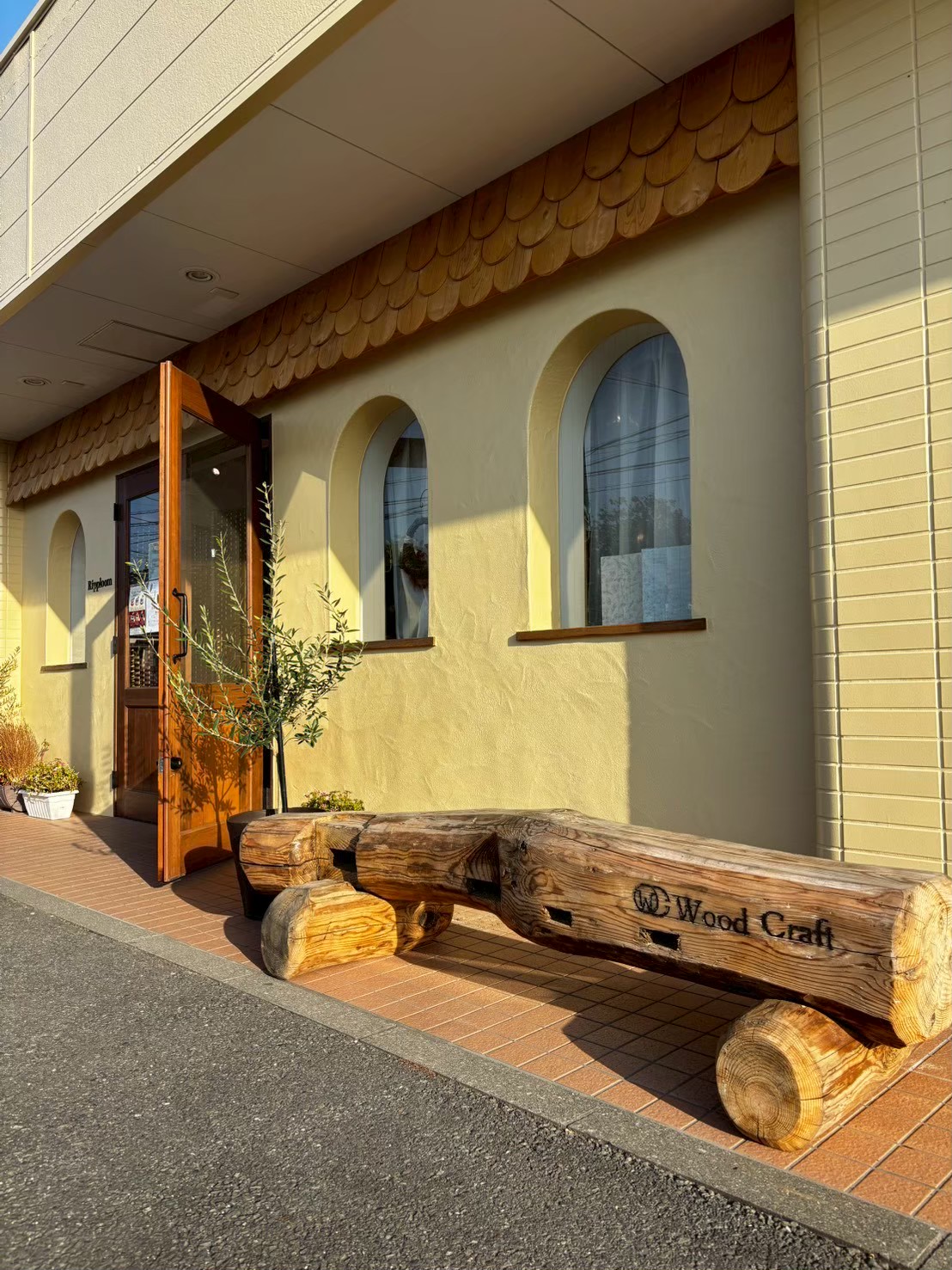 やわらかな曲線と風合いのある木目が、お客様をやさしく迎え入れます。店内も同様に、木材をふんだんに取り入れ、素朴で懐かしい雰囲気に。